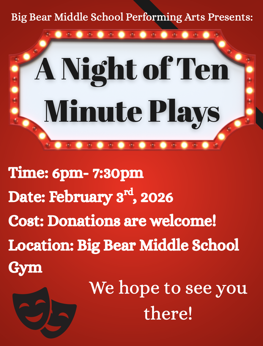 Hello everyone!As I'm sure you all know, we have the Night of Ten Minute Plays coming up on Tuesday February 3rd from 6pm-7:30pm. These students have all worked so hard this past month to put these...